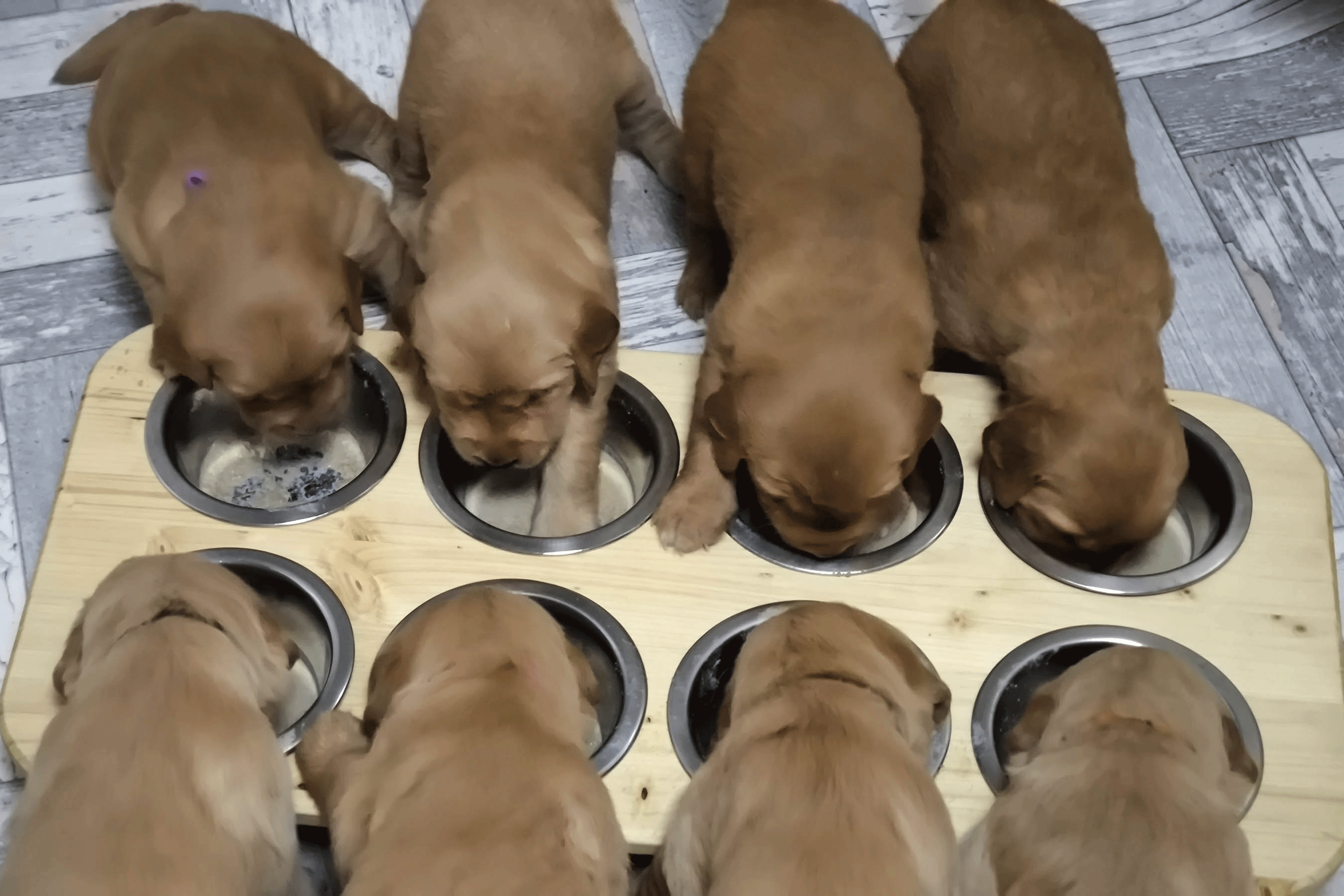 Hurra unsere Welpen sind schon drei Wochen alt und haben eine Menge neue Sachen gelernt! Sie können schon bellen, spielen und sogar knurren wie die Großen. Jetzt verlassen sie auch schon mutig ihre Wurfkiste und erkunden die Welpenstube. Wir haben mit der Fütterung begonnen, und es scheint als würde es ihnen gut schmecken! 🍗🥩